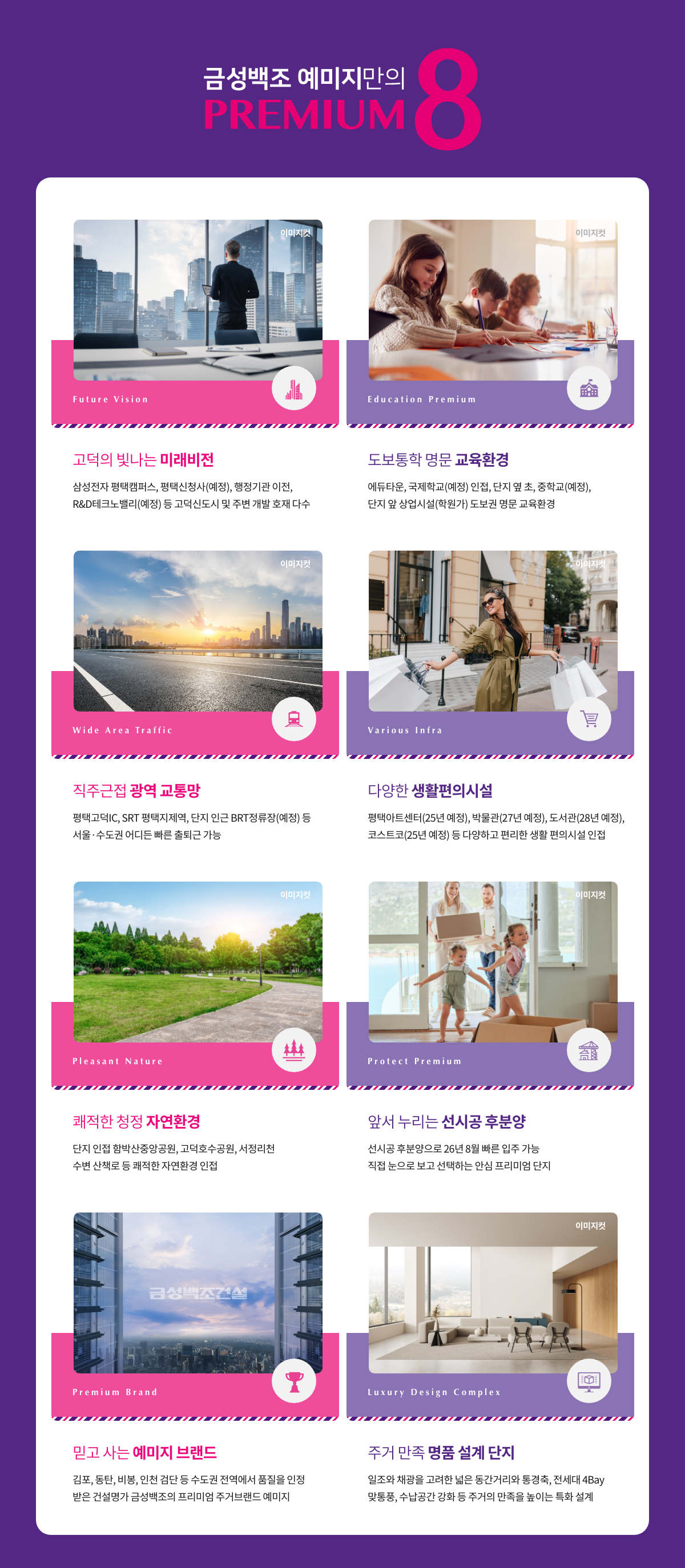 고덕국제신도시의 성장축에 놓인 입지로, 상업시설과 BRT 정류장을 가깝게 누릴 수 있습니다. 향후 글로벌 교육특구 지정 기대감, 형성 중인 학원가, 무난한 공교육 라인업이 결합되면서 학부모 수요의 관심도 높습니다. 삼성전자 평택캠퍼스 배후 직주수요가 탄탄해 전·월세 안정성도 기대되고, 평택 고덕 금성백조 예미지는 서정리역과는 거리가 다소 있지만 생활권 내 이동 편의와 직주근접의 합이 좋은 편입니다.