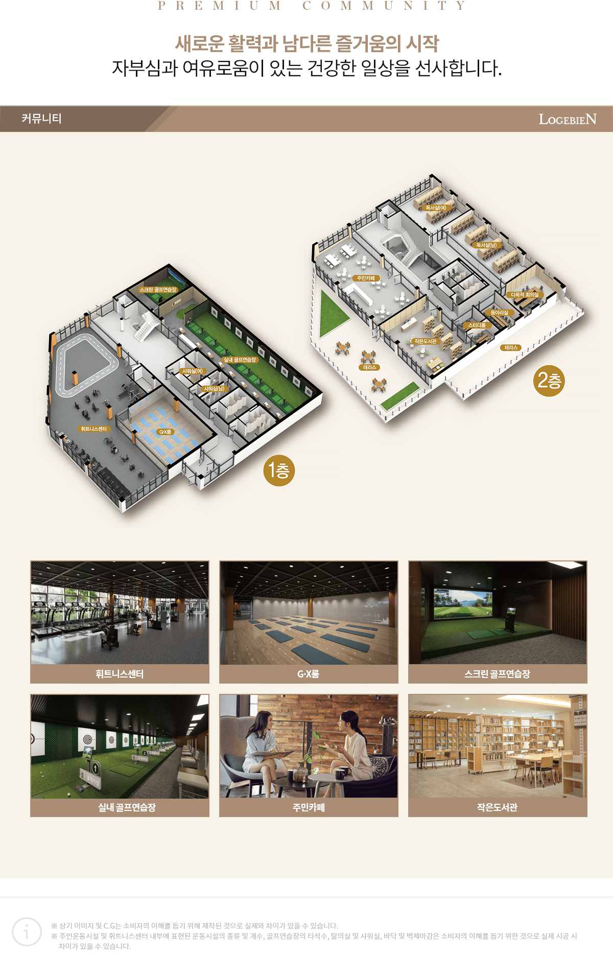 지상은 공원형으로 계획해 차량 동선을 지하로 유도했고 중앙광장과 산책로, 티하우스와 어린이 활동 공간을 촘촘히 연결했습니다. 실내 커뮤니티에는 피트니스와 지엑스, 스크린 골프와 퍼팅 라운지, 스터디룸과 독서실 같은 학습 공간이 균형 있게 들어섭니다. 다함께 돌봄센터와 어린이집, 키즈 스테이션 등 가족 생활을 지원하는 프로그램도 준비되어 있어 생활의 대부분을 단지 안에서 해결하는 흐름을 만듭니다. 이처럼 용인 고진역 로제비앙은 대단지 커뮤니티의 밀도와 운영 효율을 체감할 수 있는 구성입니다.