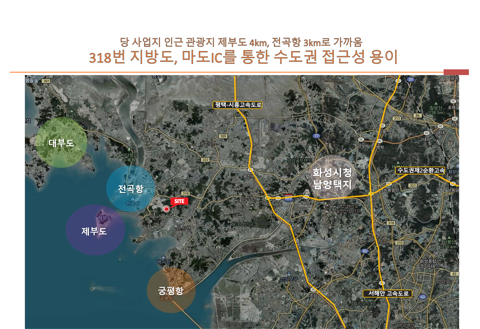 2) 송산마도 IC: 10분 거리에 위치해 고속도로 접근성이 뛰어나 서울 및 수도권 어디든 빠르게 이동할 수 있습니다.