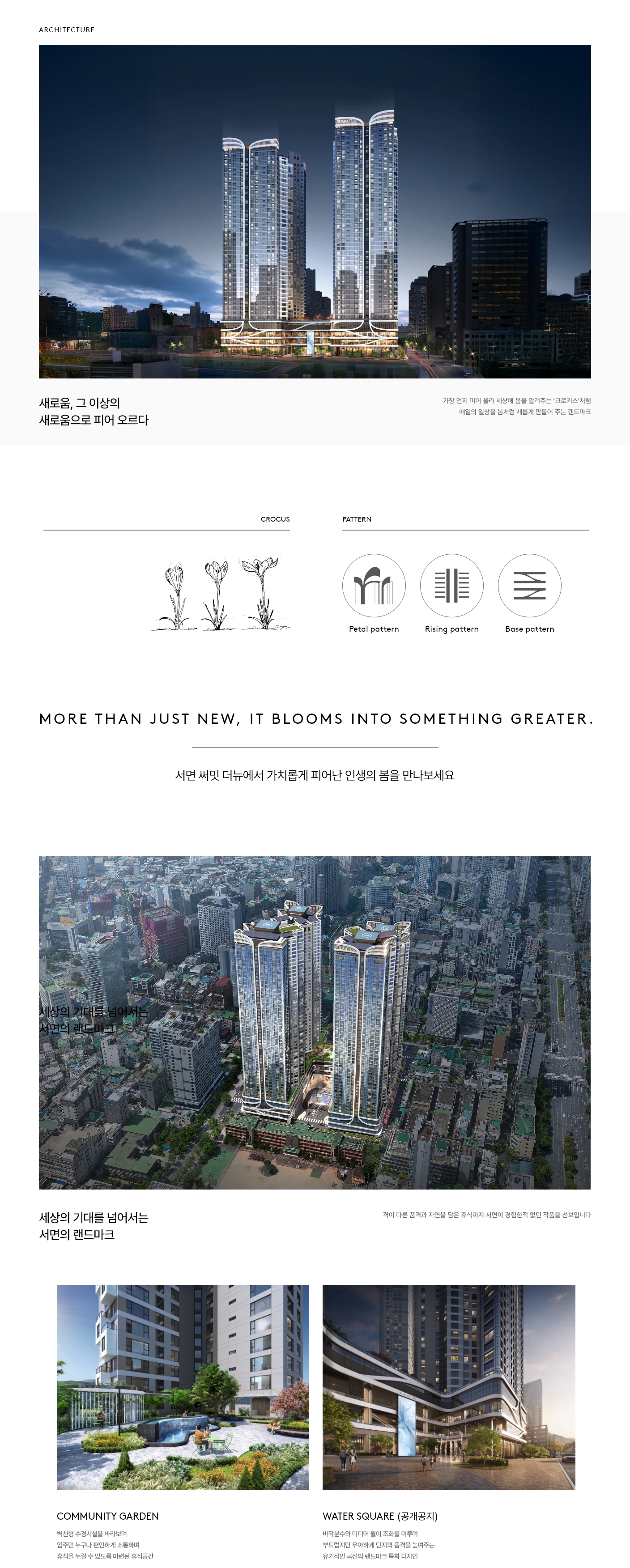 서면 써밋 더뉴는 도심 중심부의 대지에 지하와 지상을 입체적으로 활용해 생활 동선과 조망 가치를 극대화한 것이 특징입니다. 수직적 집적을 통해 확보한 세대 수와 커뮤니티 면적, 저층부 근린상업시설의 조합이 자족형 라이프를 가능하게 합니다. 타입은 전용 59, 74, 84㎡의 중소형이 주력이며, 선택지를 넓히는 세부 유닛으로 실거주·투자 수요의 균형을 맞췄습니다. 상징성이 분명한 초고층 외관과 밤의 스카이라인까지 고려한 파사드는 서면 써밋 더뉴를 지역의 새로운 아이콘으로 자리매김하게 합니다.