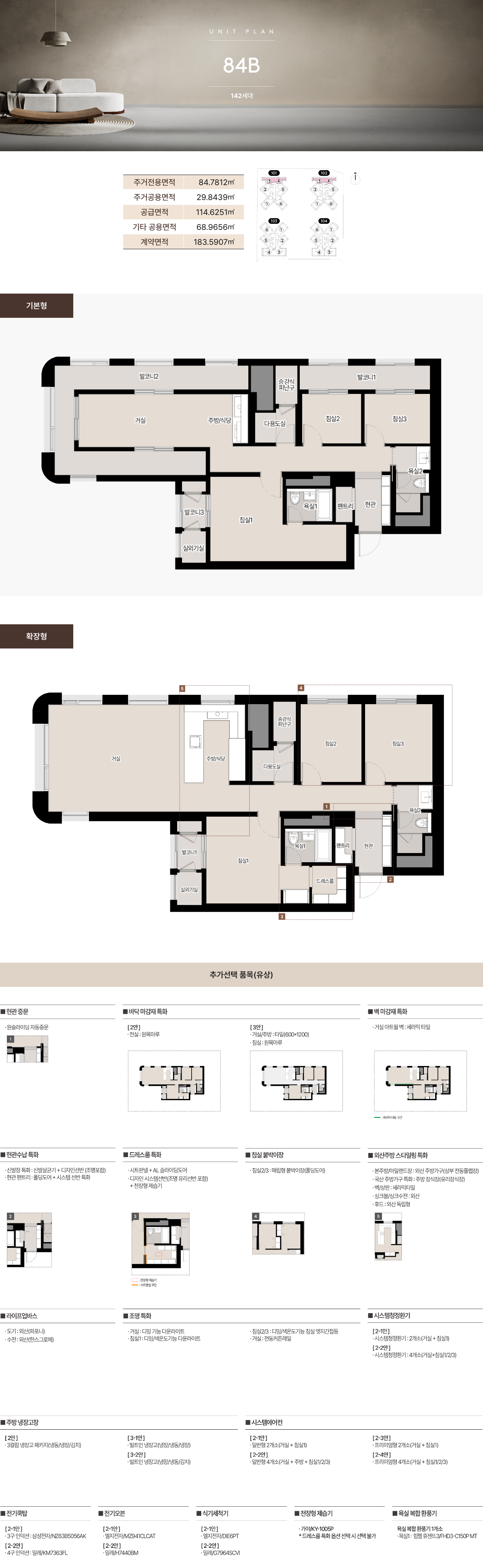 서면 써밋 더뉴의 유니트는 4베이 중심의 판상형과 공간 분리에 강점이 있는 타워형을 적절하게 혼합했습니다. 59㎡는 실속형 3룸 구성에 발코니와 팬트리를 더해 체감 면적을 키웠고, 74㎡는 거실과 주방을 일자 동선으로 연결해 가족 커뮤니케이션을 강화했습니다. 84㎡는 알파룸과 대형 드레스룸, 복도 팬트리 등 다목적 수납을 적극 반영해 자녀방·홈오피스·취미실 등으로의 확장성이 뛰어납니다. ㄷ자형 또는 ㄱ자형 주방과 창호 배치는 채광·환기를 돕고, 현관 창고와 다용도실은 계절·레저 물품 보관까지 여유롭게 수용합니다. 이러한 설계 포인트는 서면 써밋 더뉴를 “실제보다 넓게 느껴지는 집”으로 만드는 핵심입니다.