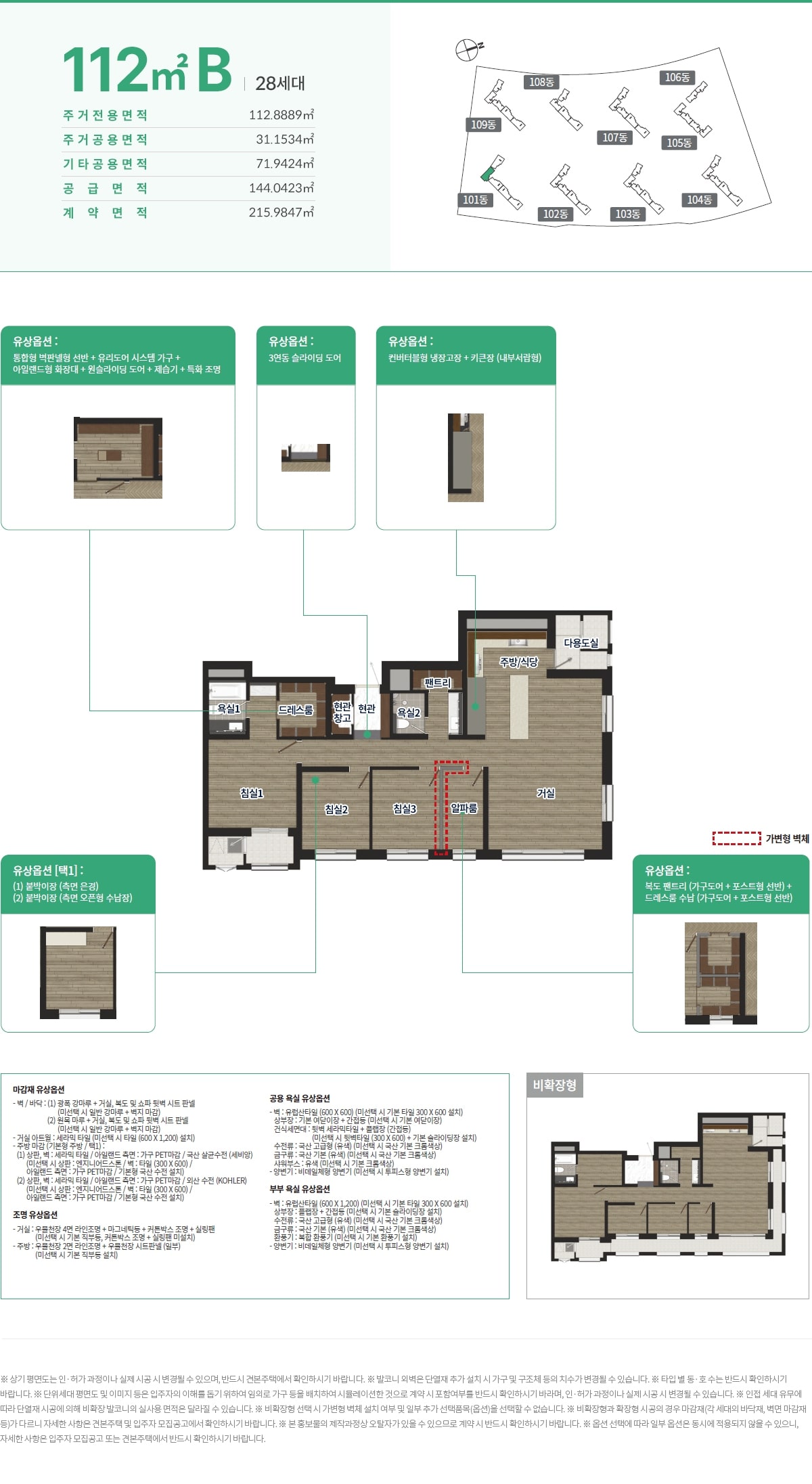 상품 구성은 실거주 포인트를 촘촘히 눌러 담았습니다. 김포 풍무역 호반써밋의 전용 84·112㎡는 4베이 판상형 위주로 채광과 환기를 확보했고, 타입에 따라 5베이를 도입해 거실 폭과 수납 동선을 넉넉히 가져갑니다. 안방 대형 드레스룸, 현관 팬트리, 다용도실 연계 주방 동선, 가변형 벽체 등은 가족 형태 변화에 유연하게 대응하도록 설계되었습니다. “방은 많은데 수납이 모자라다”는 기존 불만을 줄이고, 아이가 자라며 방 구성을 손쉽게 바꿀 수 있도록 한 점이 돋보입니다.